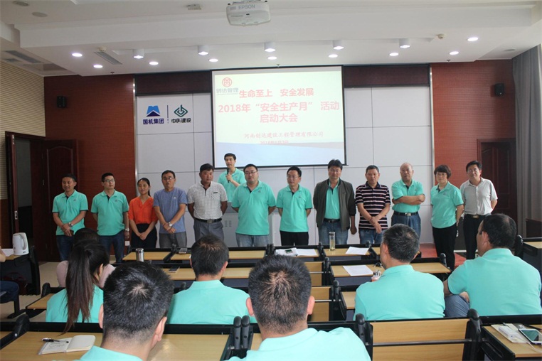 6月2日上午,以“生命至上 安全發(fā)展”為主題的創(chuàng)達管理2018年安全月活動在公司總部17樓會議室舉行,公司董事長楊明宇、執(zhí)行董事徐希萍、執(zhí)行總裁高志偉出席會議,公司各中心負責人、在鄭項目部主要負責人參加了動員會,會議由工程管理中心總經(jīng)理王恒瑩主持。