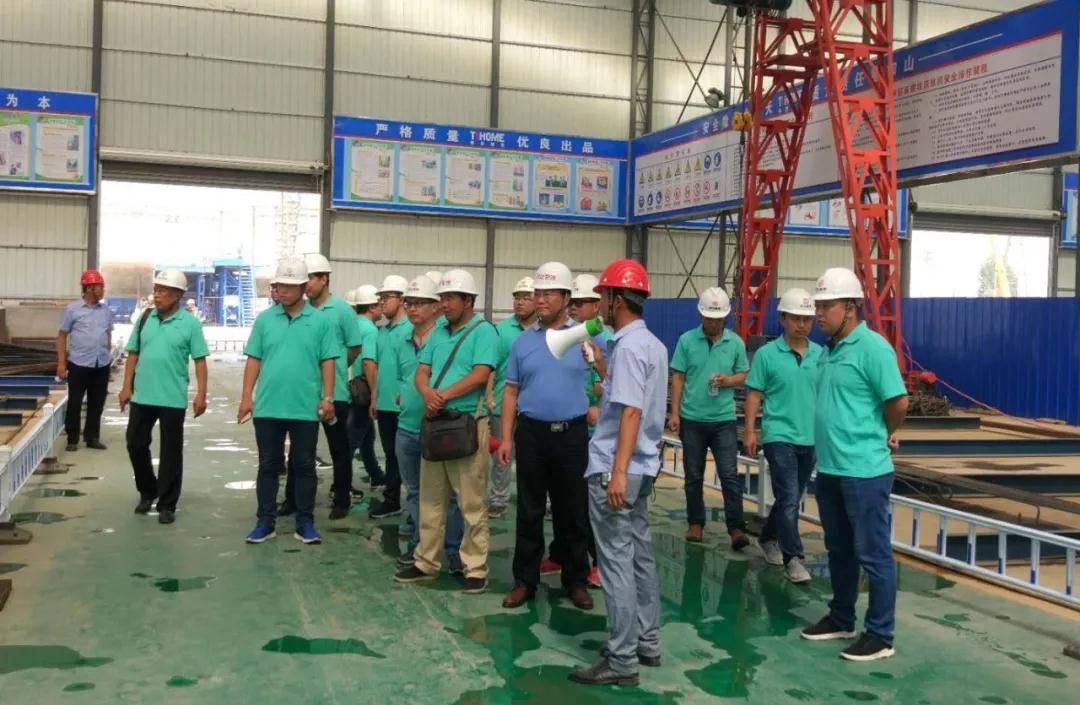 觀摩隊(duì)伍觀摩了橋梁預(yù)制廠生產(chǎn)車間,作為河南省首個(gè)采用預(yù)制T構(gòu)懸臂粱拼裝的項(xiàng)目,施工難度大,技術(shù)要求高,技術(shù)人員詳細(xì)講解了材料加工成型和制作及T構(gòu)懸臂粱拼裝現(xiàn)場制作工藝和質(zhì)量管控要點(diǎn)。通過講解,使大家對橋梁施工新型工藝技術(shù)有了更深刻的理解,更加感受到技術(shù)創(chuàng)新在施工中的重要性。