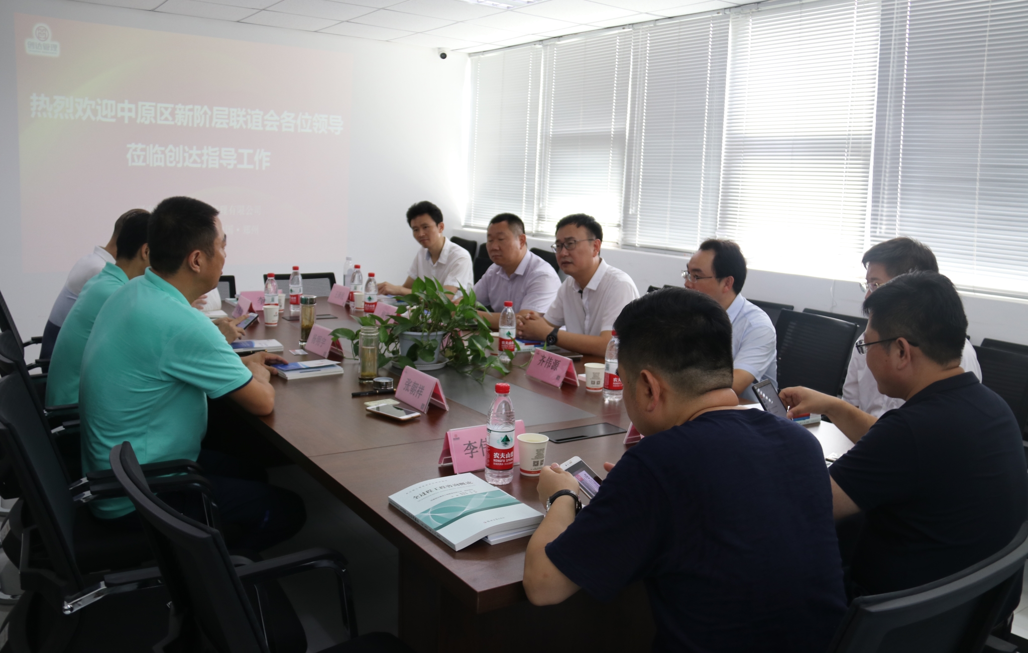 7月28日,鄭州市中原區(qū)新的社會階層人士聯(lián)誼會組織企業(yè)參訪活動,中原區(qū)新聯(lián)會會長侯占成,常務副會長、秘書長柳青,副會長齊偉源、姚延齡、孟繁聰、高利國、李偉云等新聯(lián)會成員走進創(chuàng)達調研,河南創(chuàng)達建設工程管理有限公司董事長楊明宇、總裁張朝祥熱情接待并在二樓會議室召開座談會。