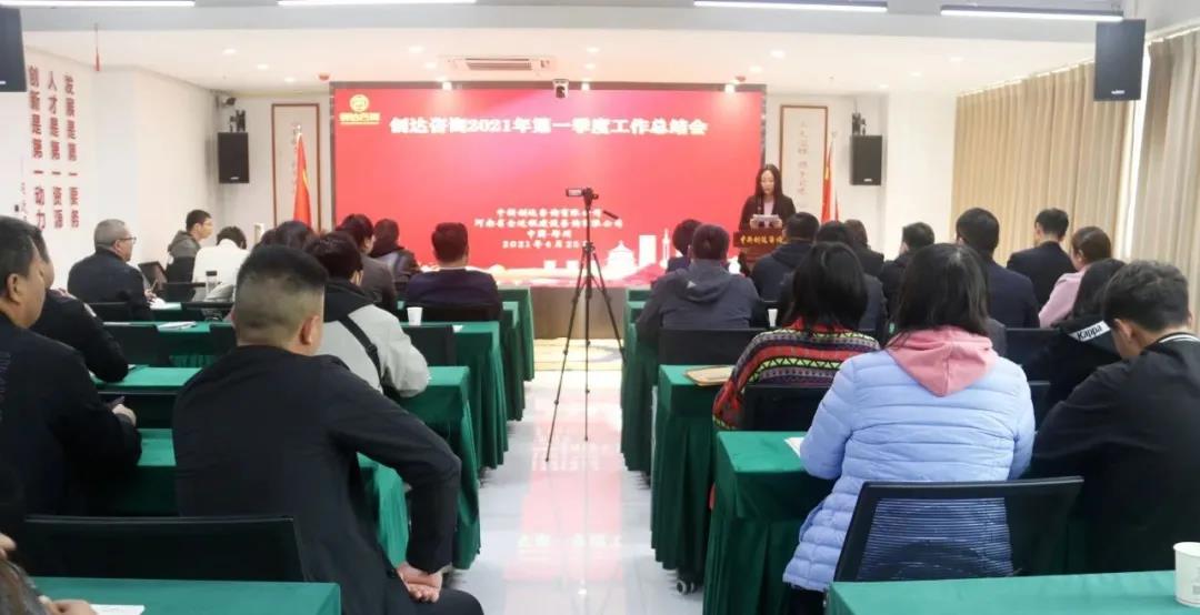 2021年4月25日上午,創(chuàng)達(dá)咨詢(xún)2021年第一季度工作總結(jié)會(huì)在鄭州總部召開(kāi),會(huì)議采用現(xiàn)場(chǎng)+視頻直播形式,在全國(guó)設(shè)置分會(huì)場(chǎng)。公司董事長(zhǎng)楊明宇,執(zhí)行董事徐希萍,副總裁葛群、丁東,各中心負(fù)責(zé)人及全國(guó)各地分公司、事業(yè)部、項(xiàng)目部代表參加會(huì)議。會(huì)議由市場(chǎng)開(kāi)發(fā)中心常務(wù)副總路俠主持。