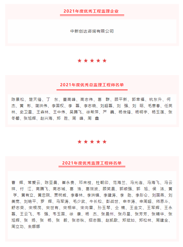 近日,河南省建設(shè)監(jiān)理協(xié)會(huì)發(fā)布《關(guān)于表彰2021年度在推動(dòng)行業(yè)發(fā)展等方面做出優(yōu)異成績(jī)的工程監(jiān)理企業(yè)和個(gè)人的決定》,評(píng)選出在行業(yè)內(nèi)對(duì)2021年度在黨團(tuán)基層組織建設(shè)、公益慈善事業(yè)、誠(chéng)信履職盡責(zé)、參與行業(yè)公共事務(wù)、推動(dòng)行業(yè)發(fā)展等方面做出優(yōu)異成績(jī)的工程監(jiān)理企業(yè)和從業(yè)人員進(jìn)行通報(bào)表彰。創(chuàng)達(dá)咨詢榮獲“2021年度優(yōu)秀工程監(jiān)理企業(yè)”稱號(hào),獲獎(jiǎng)人數(shù)再創(chuàng)新高!